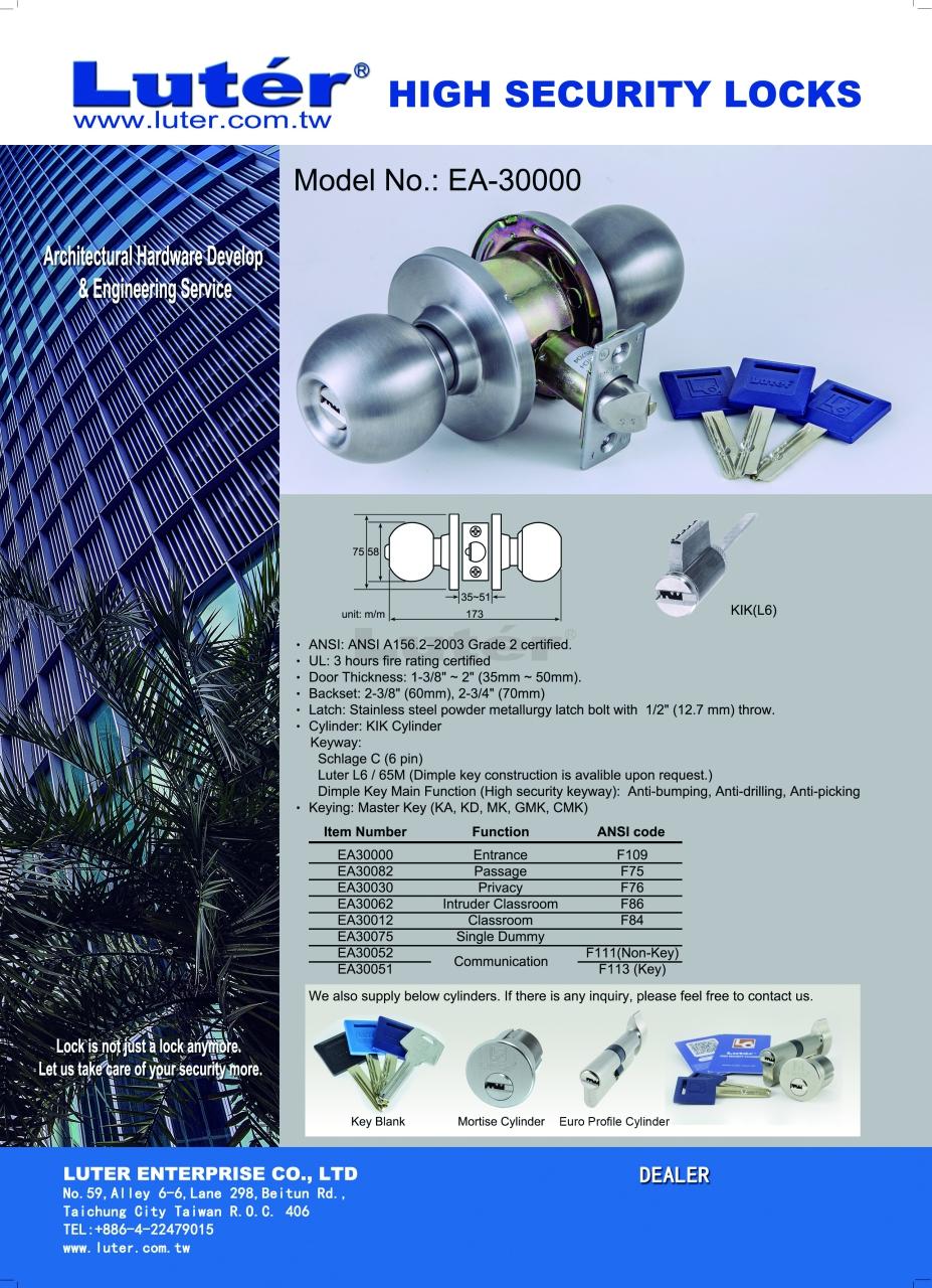 ANSI/BHMA Grade 2 Knob Lockset - EA30000