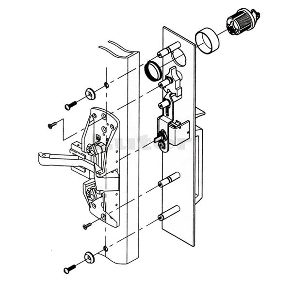 (Storeroom ANSI/BHMA Function 04, Key retracts latchbolt, otherwise always locked.) |