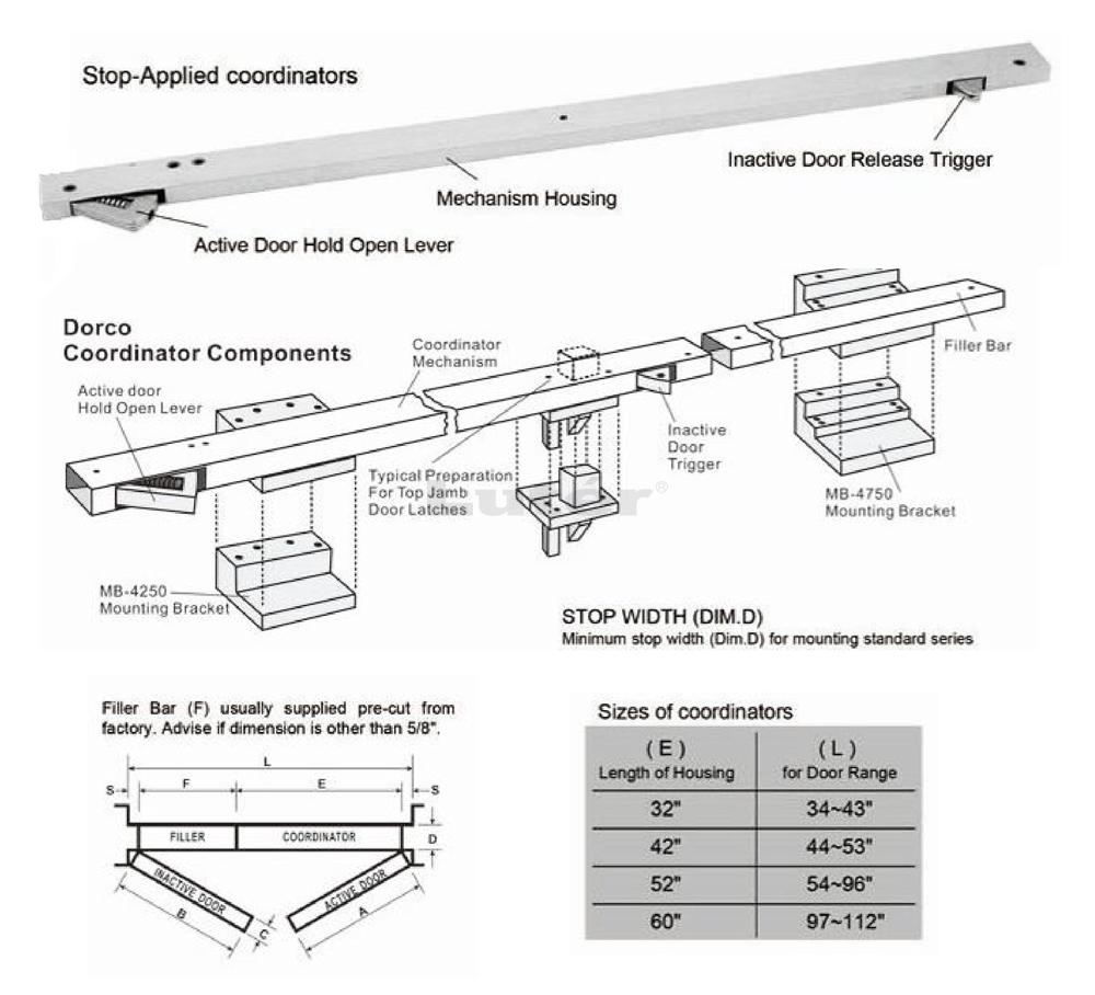 The Coordinator with Filler is designed to become an integral part of the door frame and when painted with frame becomes virtually invisible, it is engineered to prevent from damage in case of abnormal force against active door that is held open.